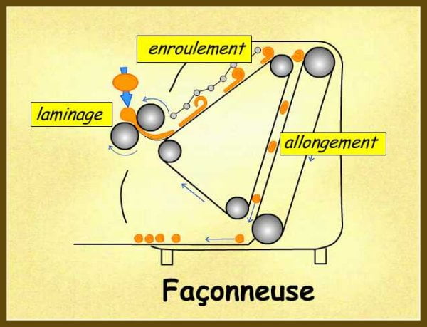 C’est la dernière manipulation durant laquelle le boulanger peut apprécier et éventuellement corriger l’évolution plastique de la pâte en laminant et en enroulant plus ou moins serré les pâtons.